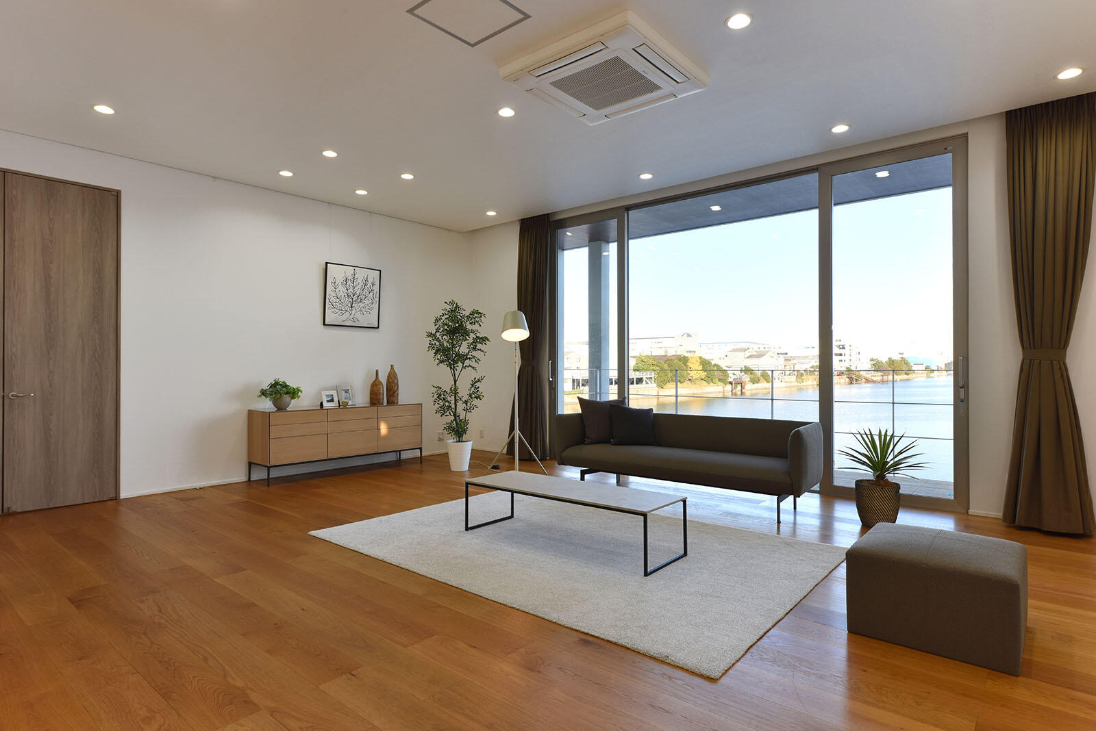 光あふれるリビングからゆるやかに伸びる階段、キッチンから水辺を眺めるインナーテラスと開放感ある庭、洗練された特別感ある佇まいのスタジオ。