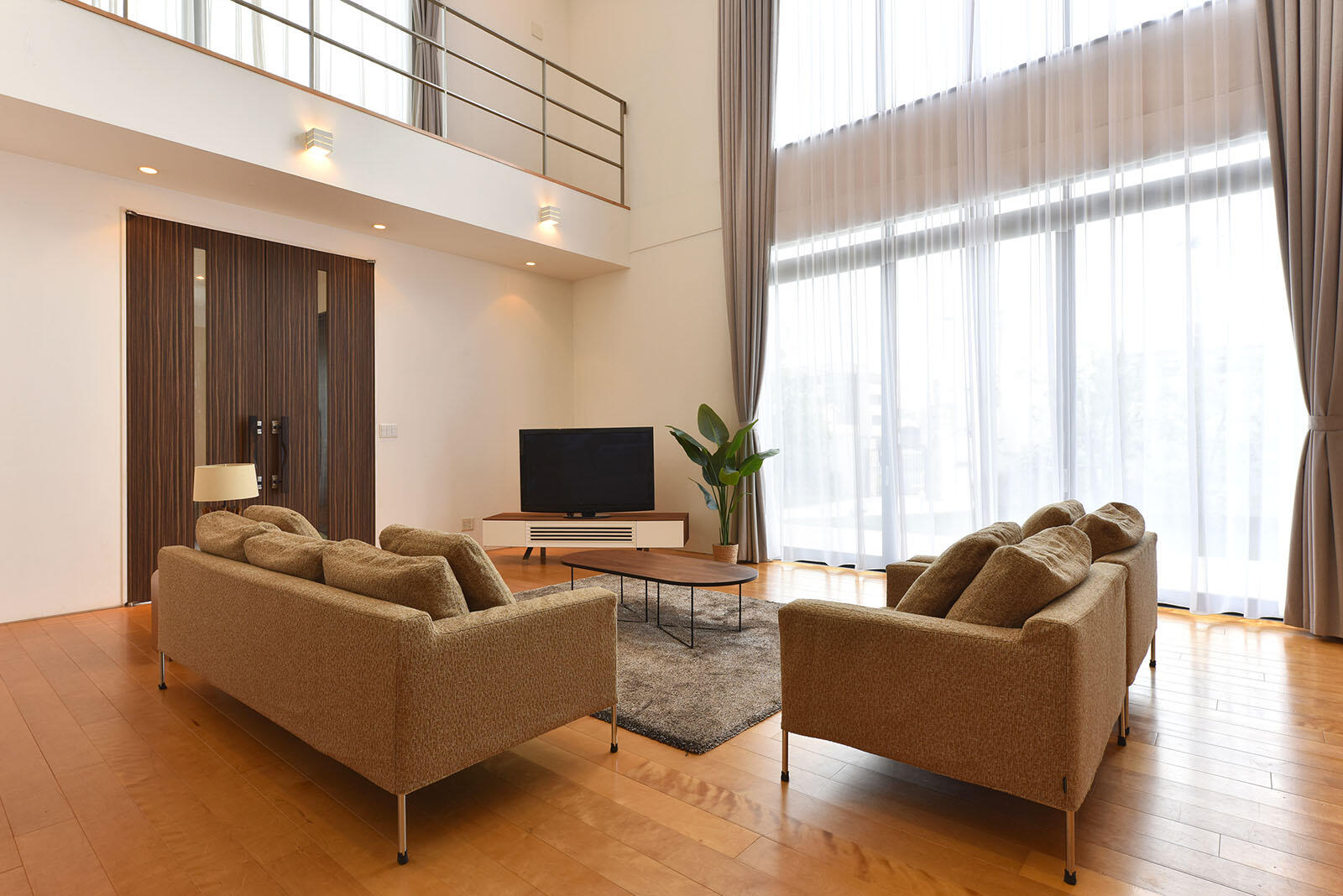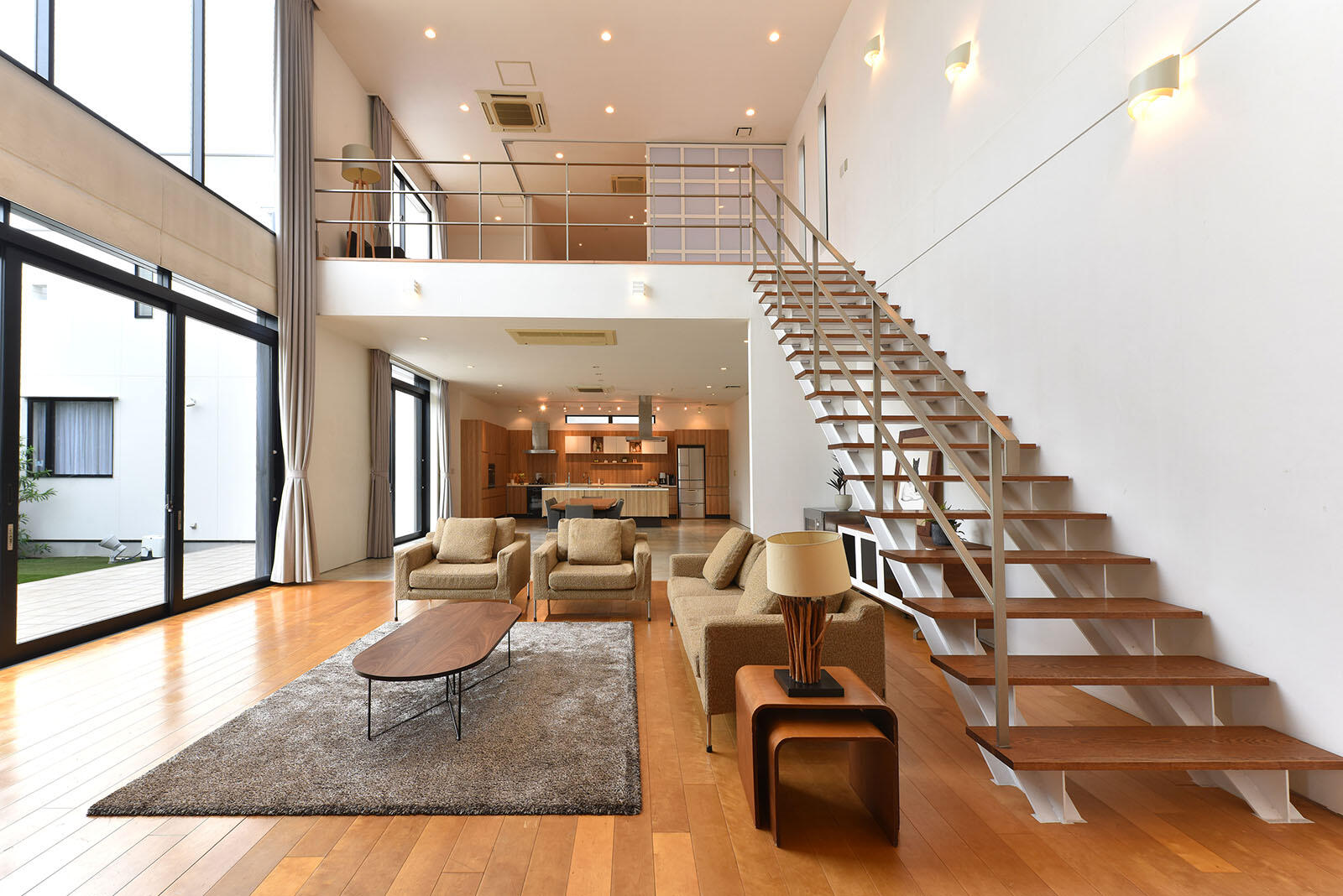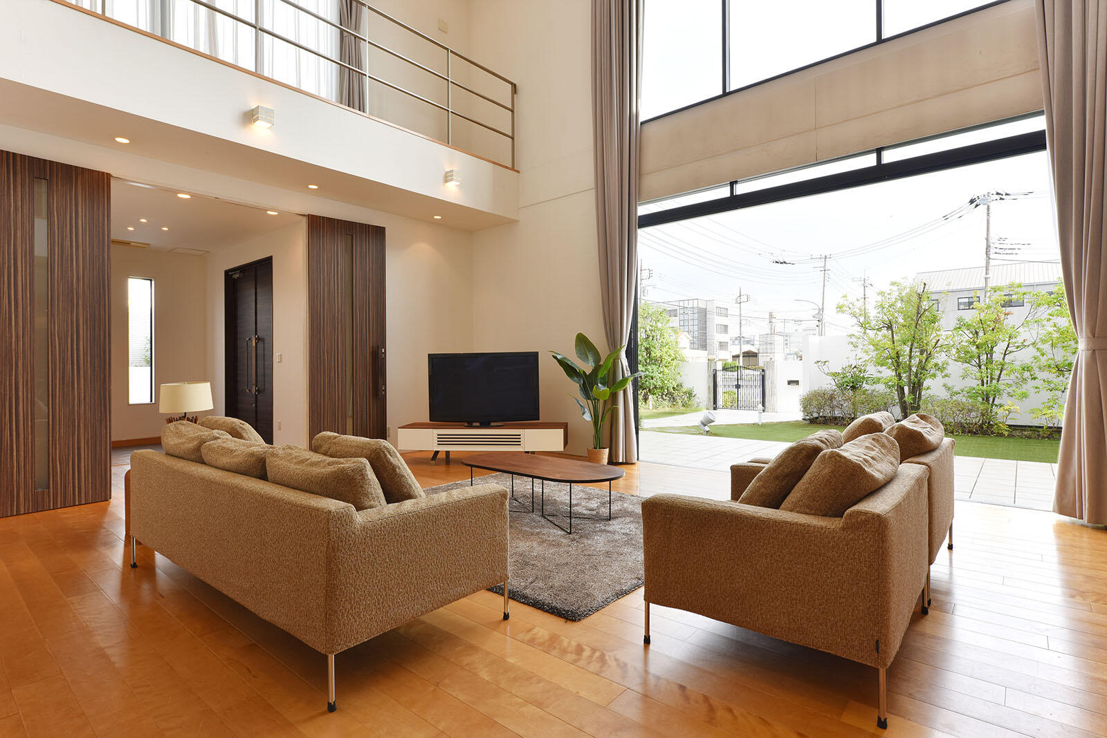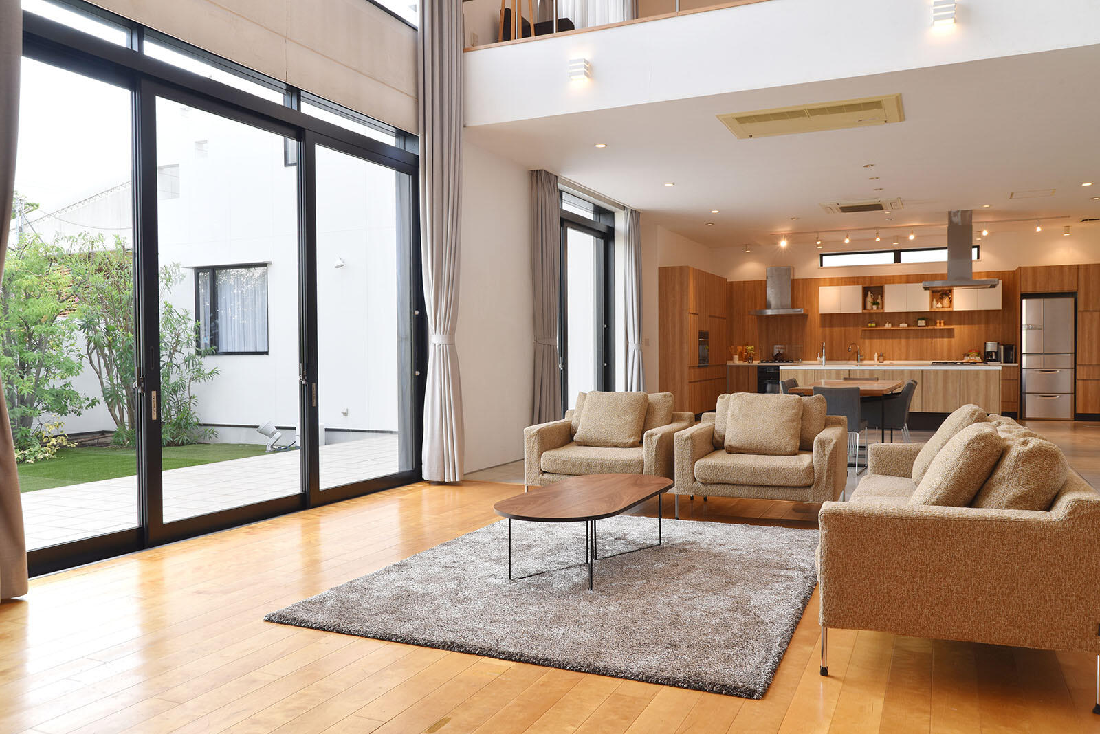 アングルと採光を意識した空間は、他にはない開放感を演出します。テラス・屋上・アプローチを効果的に配置し、室内と共に創られる屋外シーンに幅をもたせました。