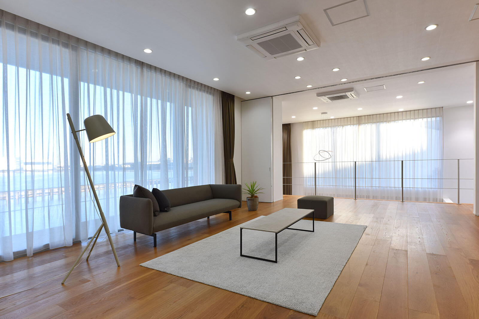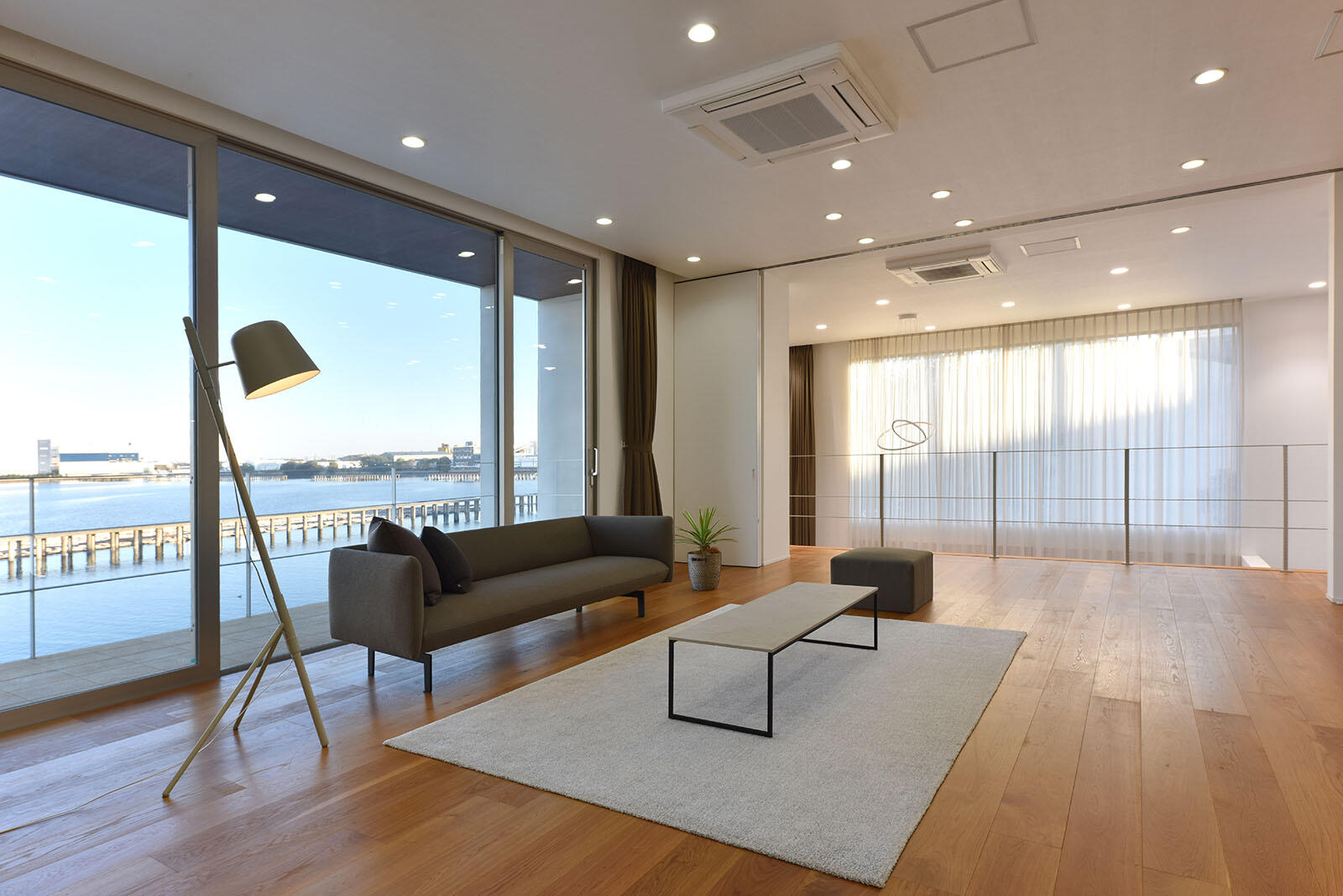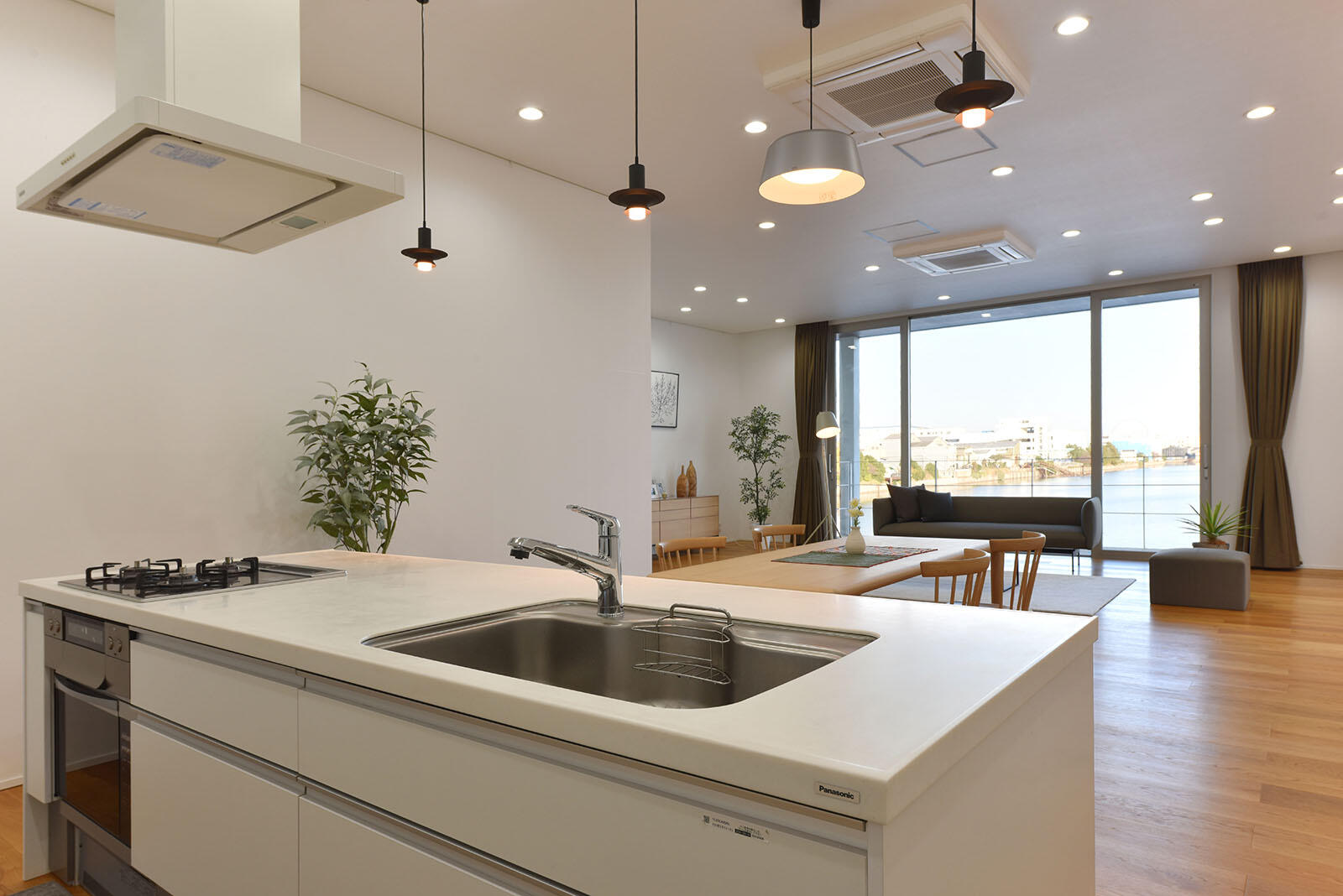 光あふれるリビングからゆるやかに伸びる階段、キッチンから水辺を眺めるインナーテラスと開放感ある庭、洗練された特別感ある佇まいのスタジオ。